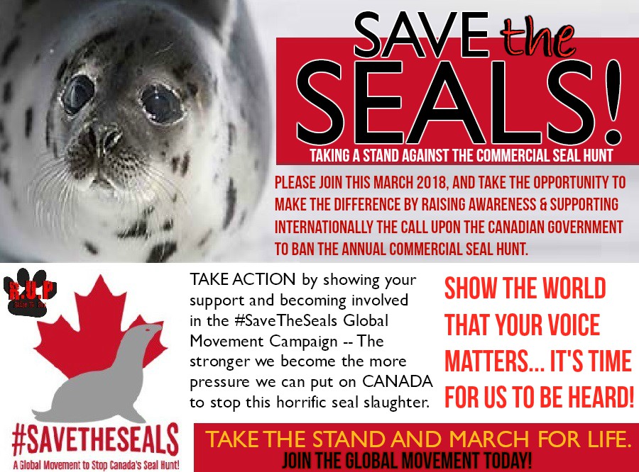 As we organize and plan for the MARCH FOR SEALS, which is planned within the city of Ottawa, Ontario --- we are hoping to count on the support of others in organizing their own march demonstration within their countries, communities etc to fully extend the reach of our urgent calling to #SaveTheSeals.